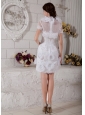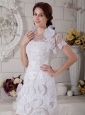 The Most Popular Column Scoop Short Wedding Dress Beading and Hand Made Flowers Mini-length Tulle