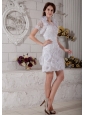 The dreamy yet sassy style of this scoop minidress is sure to win you over! Its bodice are totally accented with appliques and beads wich shinning in the light. And the mini-skirt is deocrated with appliques, beads and floors to add a lovely effect. The unique sheer scoop neckline and the lace jacket with floors produce a charming look. A prettily embellished sheath style to ensure a flattering fit.The back is finished with a zipper up back. You are the flirty woman in the party with the dress.
