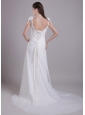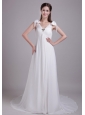 The most Popular Empire V-neck Brush Train Chiffon Beading Beach Wedding Dress