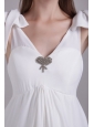 Do you want to be different from others at the party? This beautiful white evening dress with bowknot straps will help you become the shining star. When you put on this enchanting dress to attend parties, others will envy your elegant evening dress. The v-neck design with delicate embellishments shows off your sexy and your slender body. The flowing column skirt with a train around at the very bottom gives you a style of grace. And the chiffon makes you feel soft and comfortable. Everyone will look at you as you enjoy all your party. So, what are you hesitating? Get it home!