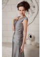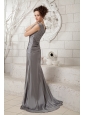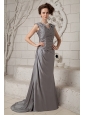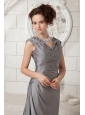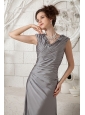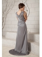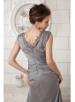 The Most Popular Gray Column V-neck Prom Dress Chiffon Ruch Brush Train