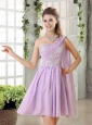 The Most Popular Lilace One Shoulder A line Prom Dress with Rushing