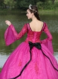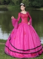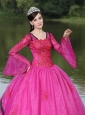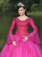 The Most Popular Long Sleeves Appliques Decorate Fuchsia Quinceanera Dress With V-neck