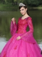 Home >  Quinceanera Dresses >  Unique Quinceanera Dresses > The Most Popular Long Sleeves Appliques Decorate Fuchsia Quinceanera Dress With V-neck