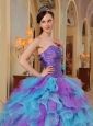 Warning: number_format() expects parameter 2 to be long, string given in /home/fashonos/domains/fashionos.com/public_html/includes/classes/currencies.php on line 52 The Most Popular Purple and Aqua Blue Quinceanera Dress Sweetheart Ruffles Organza Ball Gown- CHF