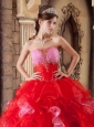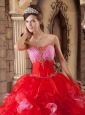 The Most Popular Red Quinceanera Dress Strapless Organza Beading and Ruffles  Ball Gown