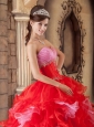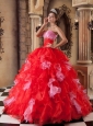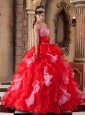Home >  Quinceanera Dresses >  Popular Quinceanera Dresses > The Most Popular Red Quinceanera Dress Strapless Organza Beading and Ruffles Ball Gown