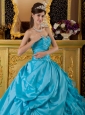 The Most Popular Teal Quinceanera Dress Sweetheart Taffeta and Organza Appliques Ball Gown