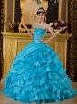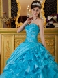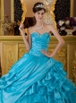 Home >  Quinceanera Dresses >  Pretty Quinceanera Dresses > The Most Popular Teal Quinceanera Dress Sweetheart Taffeta and Organza Appliques Ball Gown