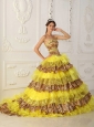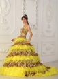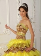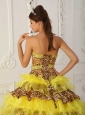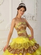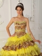 Home >  Quinceanera Dresses >  Pretty Quinceanera Dresses > The Most Popular Yellow Quinceanera Dress Strapless Sweep /Brush Train Leopard and Organza Ruffles A-Line / Princess