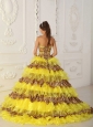 The Most Popular Yellow Quinceanera Dress Strapless Sweep /Brush Train Leopard and Organza Ruffles A-Line / Princess