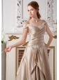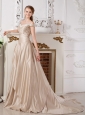 The Super Hot Champagne Off The Shoulder Appliques Wedding Dress Court Train Satin