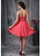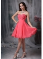 The Super Hot Cocktail Dress Coral Red A-line / Princess Sweetheart Chiffon Beading Mini-length