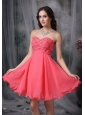 Home >  Special Occasion Dresses >  Cocktail Dresses > The Super Hot Cocktail Dress Coral Red A-line / Princess Sweetheart Chiffon Beading Mini-length
