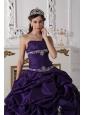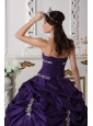 The Super Hot Dark Purple Quinceanera Dress Strapless Taffeta Appliques Ball Gown
