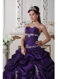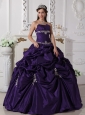Home >  Quinceanera Dresses >  Sweet 16 Dresses > The Super Hot Dark Purple Quinceanera Dress Strapless Taffeta Appliques Ball Gown