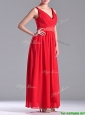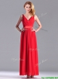 The Super Hot Empire V Neck Red Bridesmaid Dress in Ankle Length
