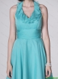The Super Hot Halter Top Turquoise Prom Dresses with Ruffles and Belt