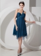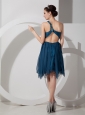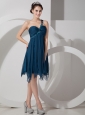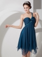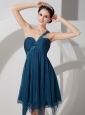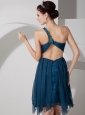 Home >  Prom Dresses >  Short Prom Dresses > The Super Hot Peacock Green Empire One Shoulder Short Prom Dress Chiffon Beading and Ruch Knee-length