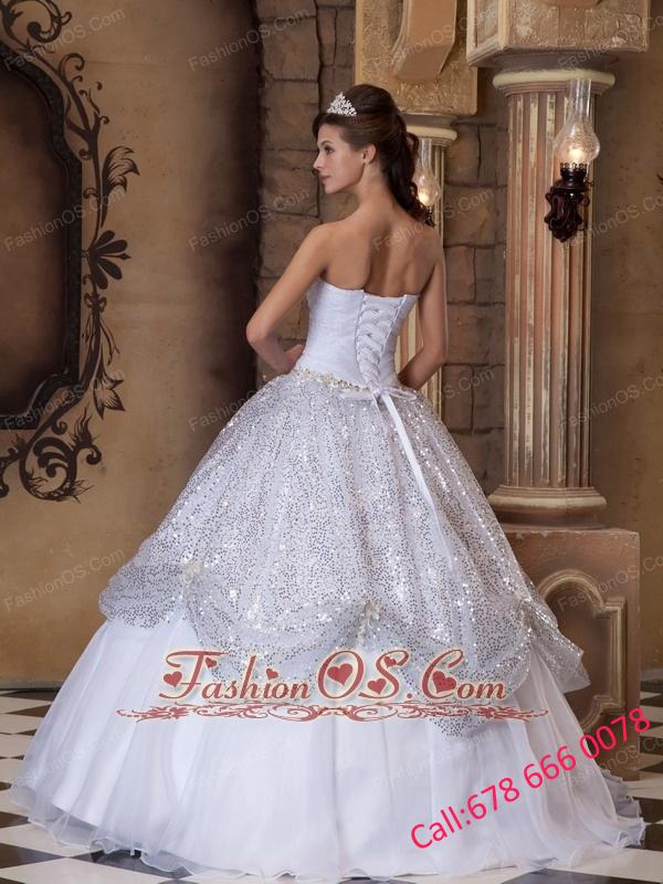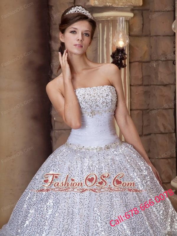 Home >  Quinceanera Dresses >  15 Quinceanera Dresses > The Super Hot White Quinceanera Dress Strapless Pick-ups Sequins Ball Gown