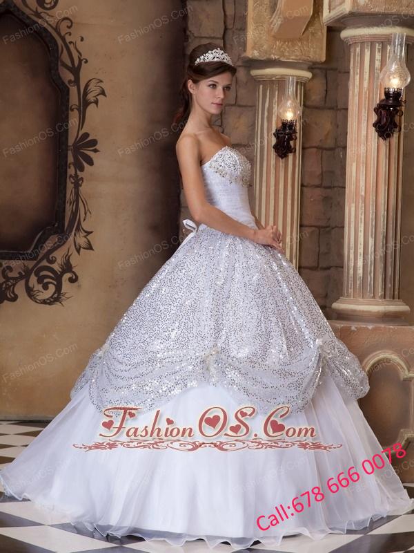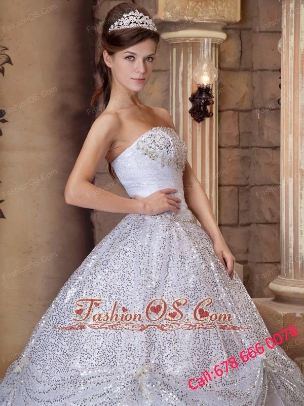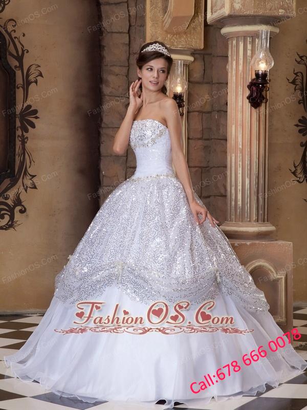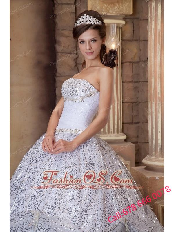 The Super Hot White Quinceanera Dress Strapless Pick-ups Sequins Ball Gown