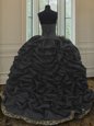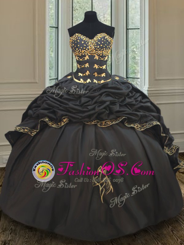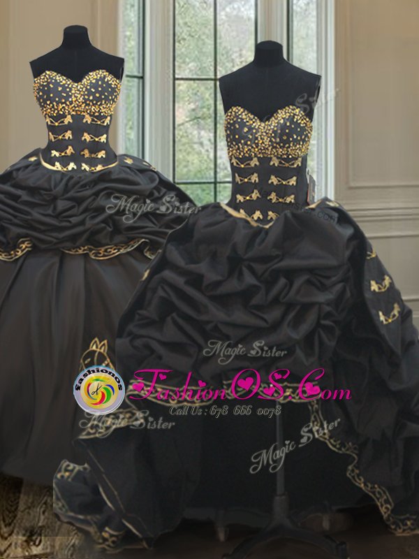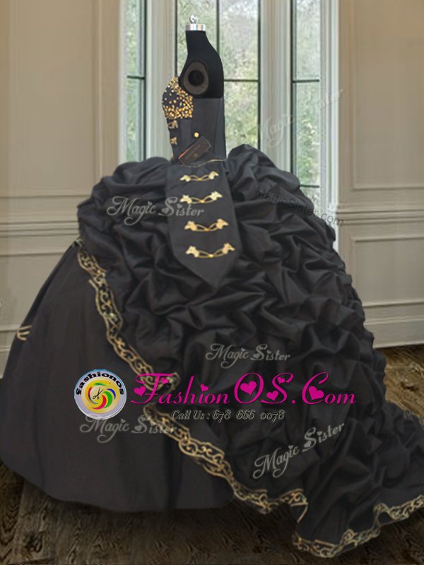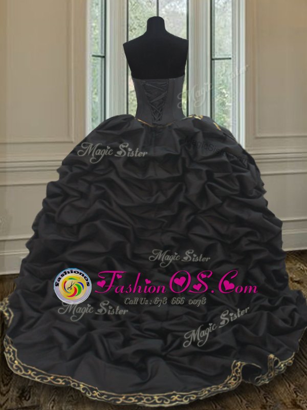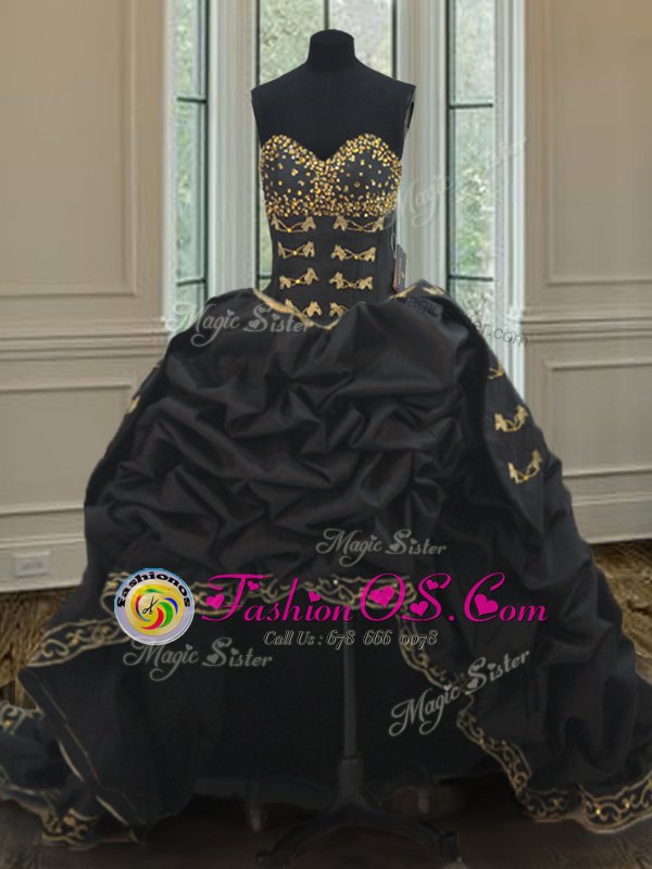 Home >  Quinceanera Dresses >  Cheap Quinceanera Dresses > Three Piece Black Sleeveless With Train Beading and Embroidery and Pick Ups Lace Up Quinceanera Gown