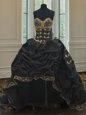 Three Piece Black Sleeveless With Train Beading and Embroidery and Pick Ups Lace Up Quinceanera Gown