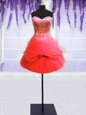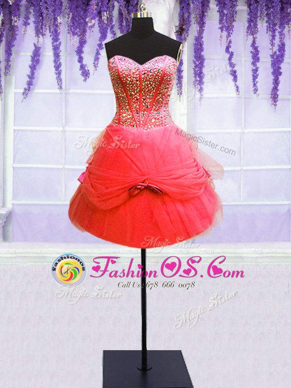 Home >  Quinceanera Dresses >  Detachable Quinceanera Skirts > Three Piece Coral Red Sleeveless Tulle Lace Up Quinceanera Gown for Military Ball and Sweet 16 and Quinceanera