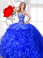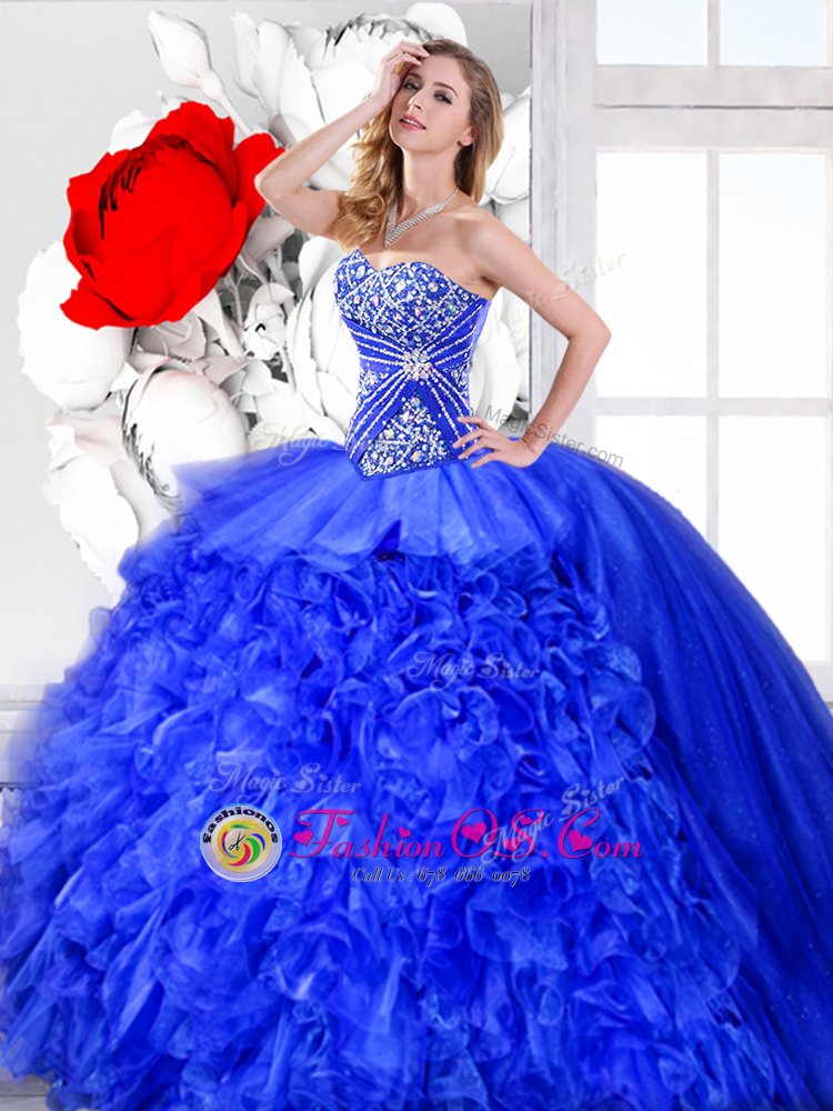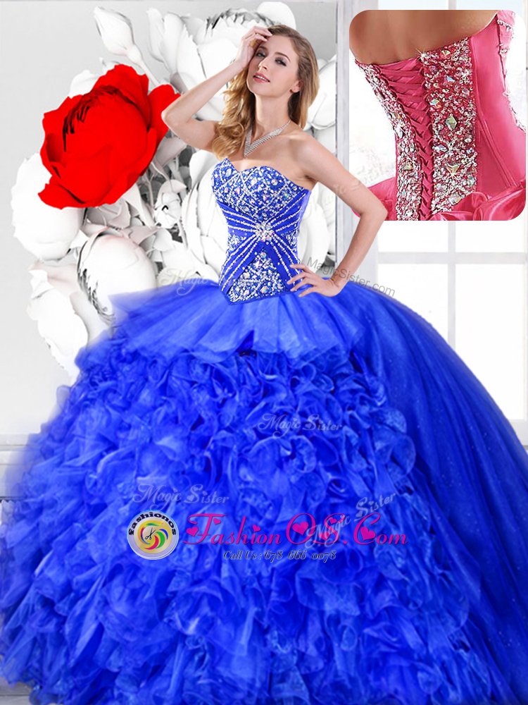 Three Piece Floor Length Blue 15th Birthday Dress Sweetheart Sleeveless Lace Up