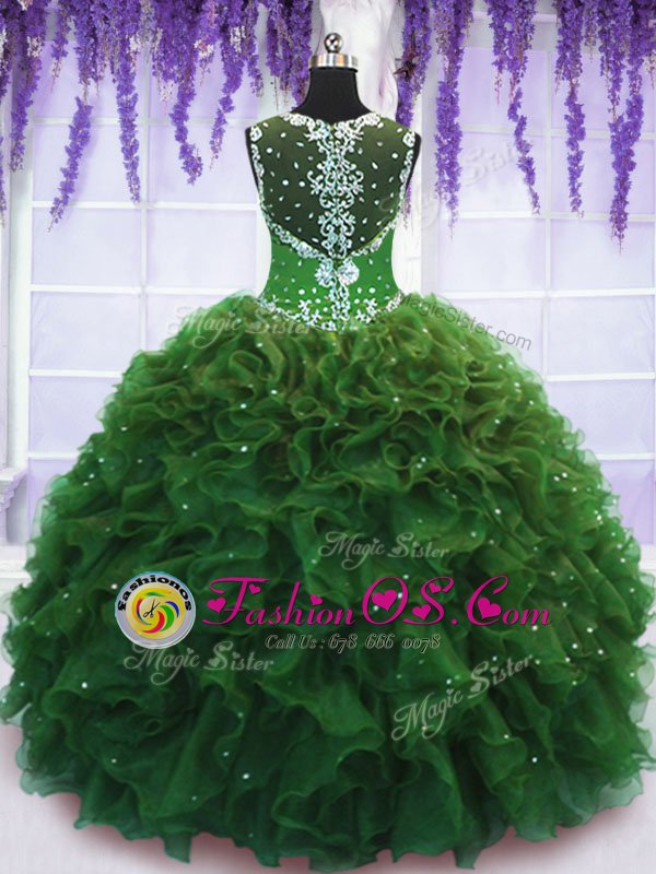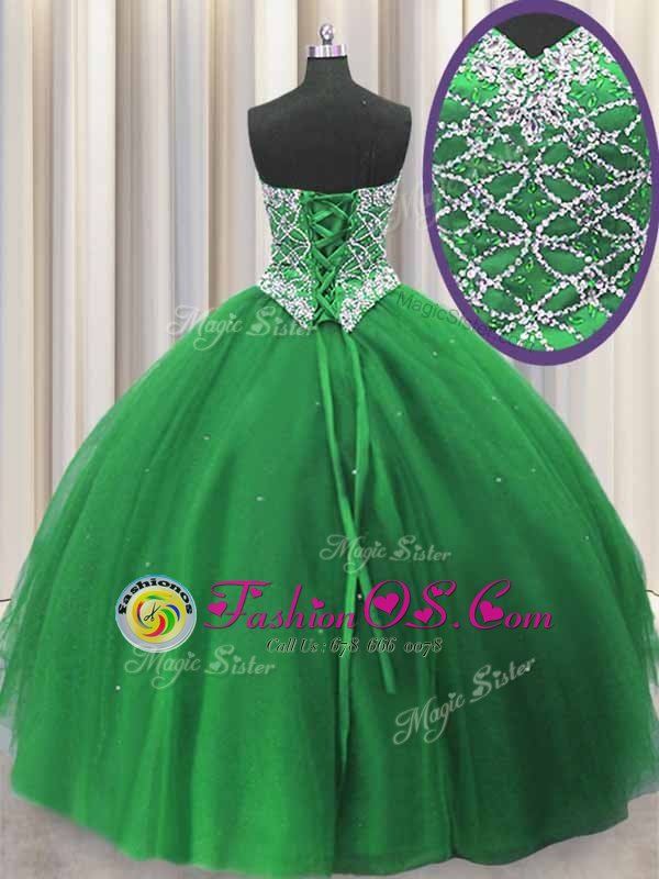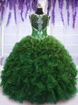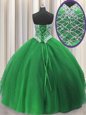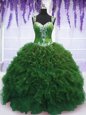 Three Piece Floor Length Green Quinceanera Dress Tulle Sleeveless Beading and Sequins
