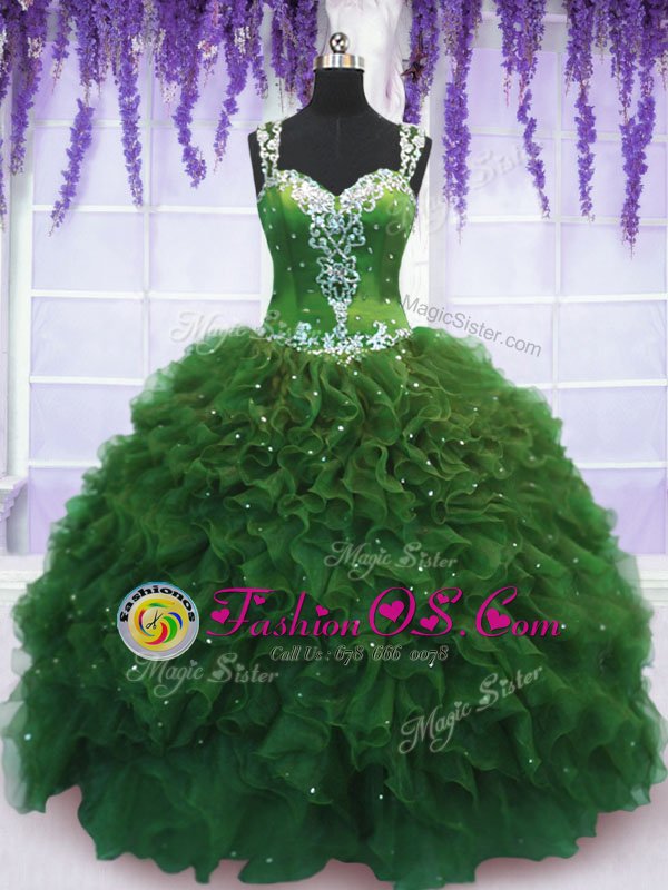 Home >  Quinceanera Dresses >  Detachable Quinceanera Skirts > Three Piece Floor Length Green Quinceanera Dress Tulle Sleeveless Beading and Sequins