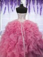 Three Piece Multi-color Lace Up Sweet 16 Dress Beading Sleeveless Floor Length