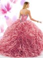 Three Piece Scoop Floor Length Lace Up Sweet 16 Dress Turquoise and In for Military Ball and Sweet 16 and Quinceanera with Beading and Ruffles