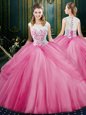 Home >  Quinceanera Dresses >  Detachable Quinceanera Skirts > Three Piece Scoop Pick Ups Floor Length Ball Gowns Sleeveless Pink Quinceanera Dress Zipper