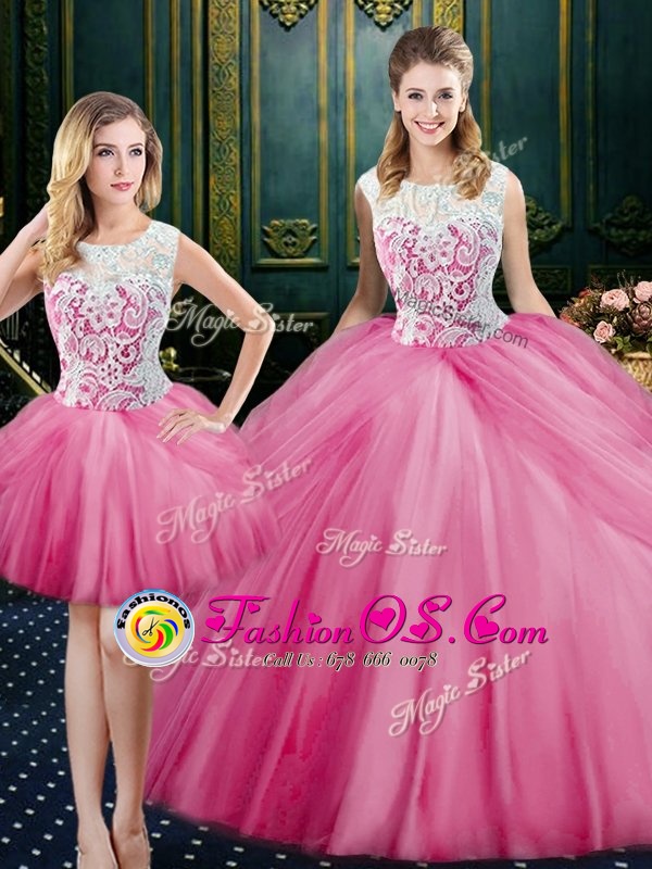 Three Piece Scoop Pick Ups Floor Length Ball Gowns Sleeveless Pink Quinceanera Dress Zipper