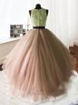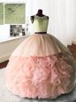 Three Piece Scoop Sleeveless Organza and Tulle and Lace Quinceanera Dresses Beading and Lace and Ruffles Brush Train Zipper