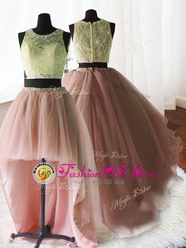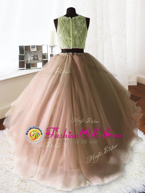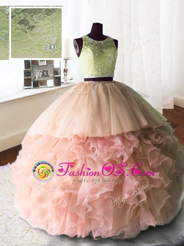 Home >  Quinceanera Dresses >  Detachable Quinceanera Skirts > Three Piece Scoop Sleeveless Organza and Tulle and Lace Quinceanera Dresses Beading and Lace and Ruffles Brush Train Zipper