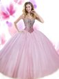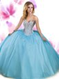 Three Piece Scoop Sleeveless Quinceanera Dresses Floor Length Beading and Ruffles Champagne Tulle