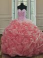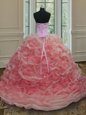 Three Piece Scoop Sleeveless With Train Beading and Lace and Ruffles Zipper Quinceanera Dresses with Lilac Brush Train