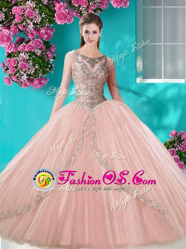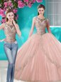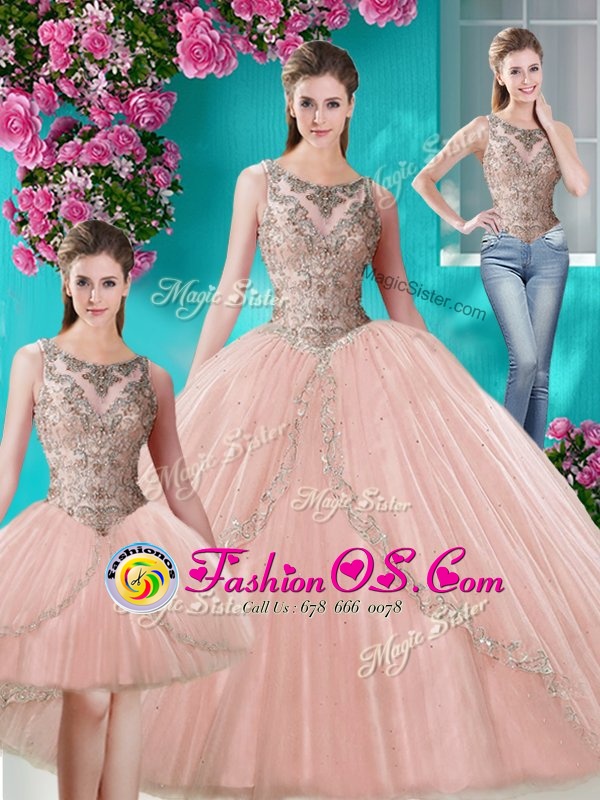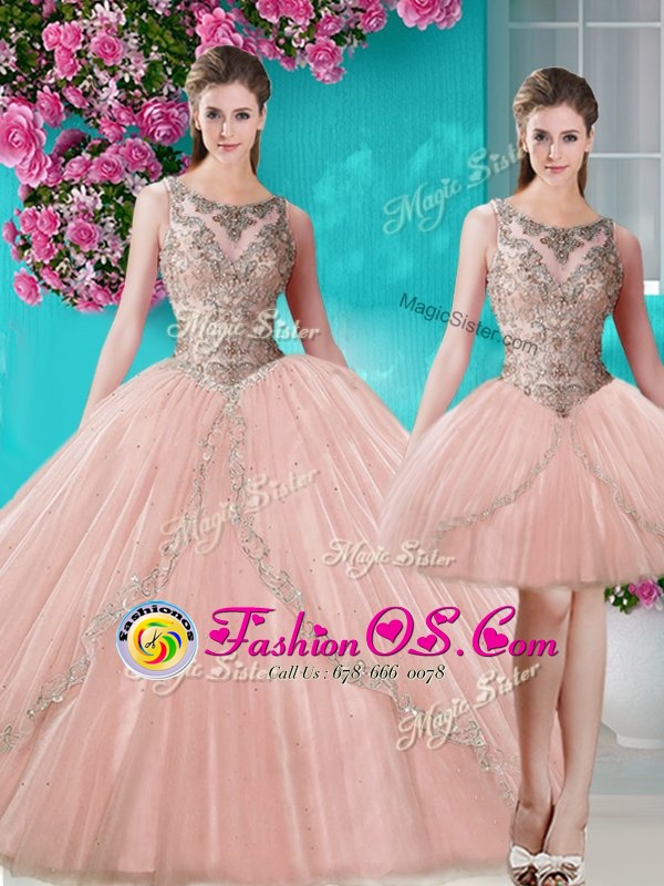 Home >  Quinceanera Dresses >  Detachable Quinceanera Skirts > Three Piece Scoop Tulle Sleeveless Floor Length Sweet 16 Dresses and Beading and Appliques