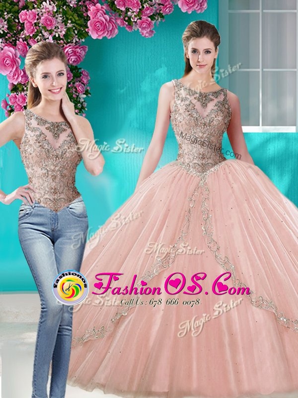 Three Piece Scoop Tulle Sleeveless Floor Length Sweet 16 Dresses and Beading and Appliques