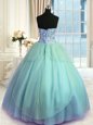 Three Piece Tulle Sweetheart Sleeveless Lace Up Beading Sweet 16 Quinceanera Dress in Blue