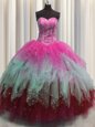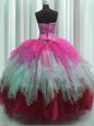 Home >  Quinceanera Dresses >  Detachable Quinceanera Skirts > Three Piece Visible Boning Multi-color Tulle Lace Up 15 Quinceanera Dress Sleeveless Floor Length Beading and Ruffles and Ruffled Layers and Sequins