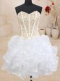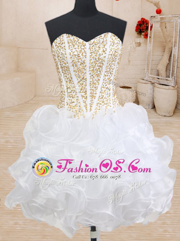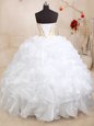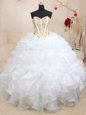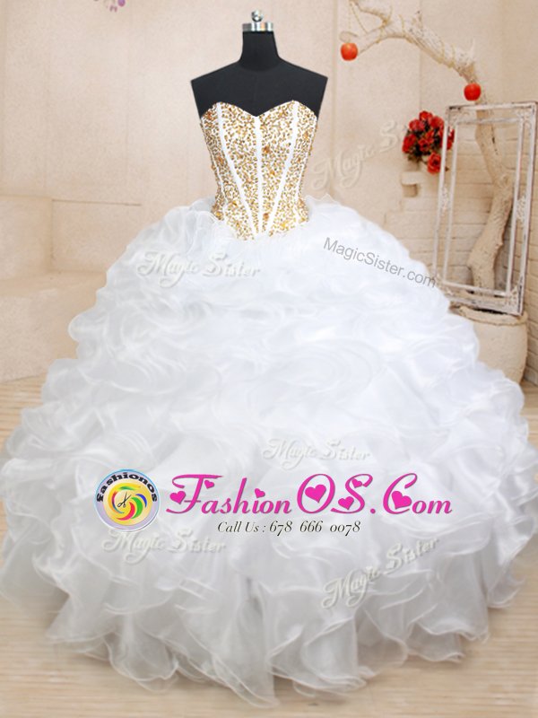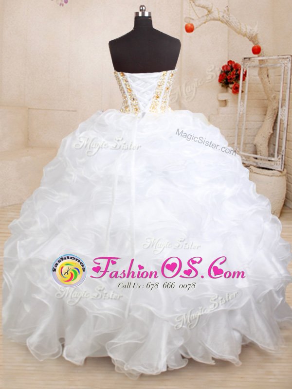 Three Piece White Sleeveless Floor Length Beading and Ruffles Lace Up Sweet 16 Dress