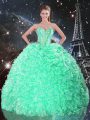 Three Pieces Quinceanera Gown Apple Green Sweetheart Organza Sleeveless Floor Length Lace Up
