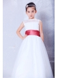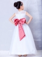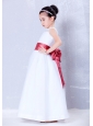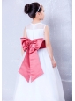 To Seller White and Coral Red A-line Bateau Bow Flower Girl Dress Ankle-length Organza and Taffeta