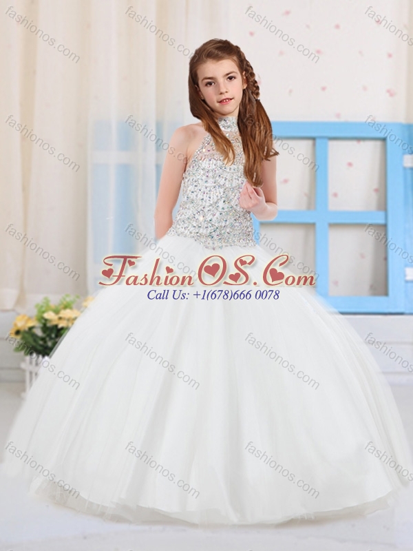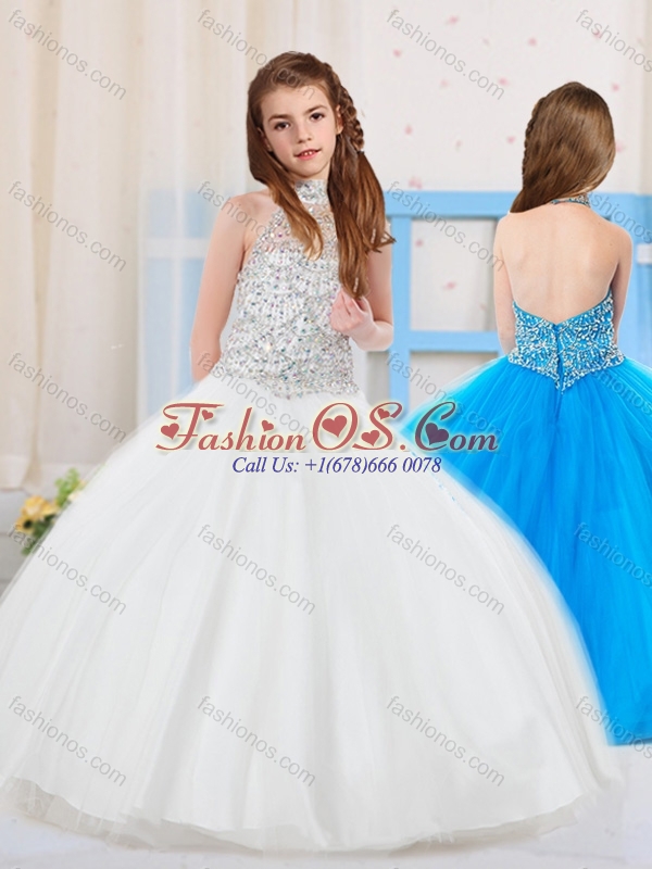 Home >  Special Occasion Dresses >  Mini Quinceanera Dresses > Top Selling Ball Gown Halter Tulle Beaded Mini Quinceanera Dress in White