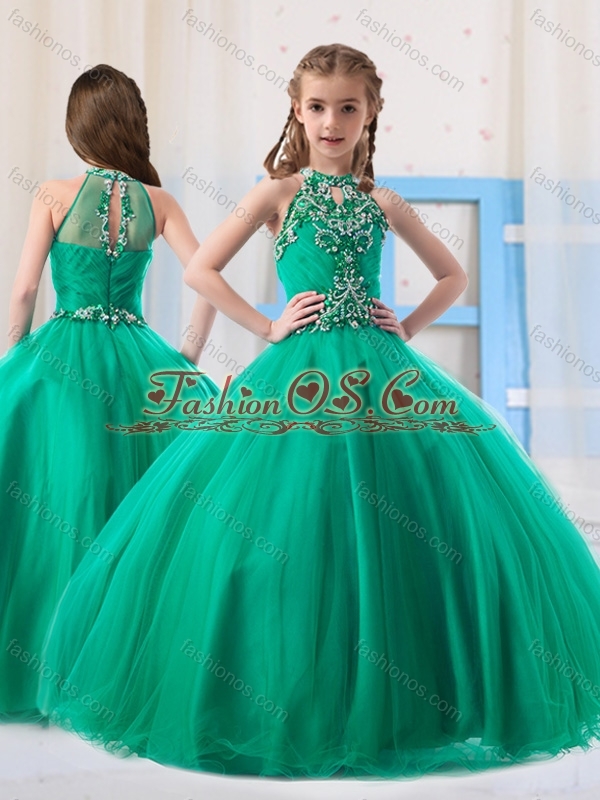 Top Selling Ball Gowns Halter Beaded Mini Quinceanera Dress in Turquoise