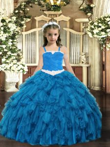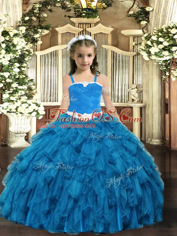 Top Selling Ball Gowns Little Girl Pageant Gowns Blue Straps Organza Sleeveless Floor Length Lace Up