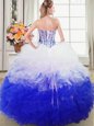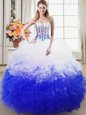 Home >  Quinceanera Dresses >  Beautiful Quinceanera Dresses > Top Selling Blue And White Organza Lace Up Quinceanera Gown Sleeveless Floor Length Beading and Ruffles